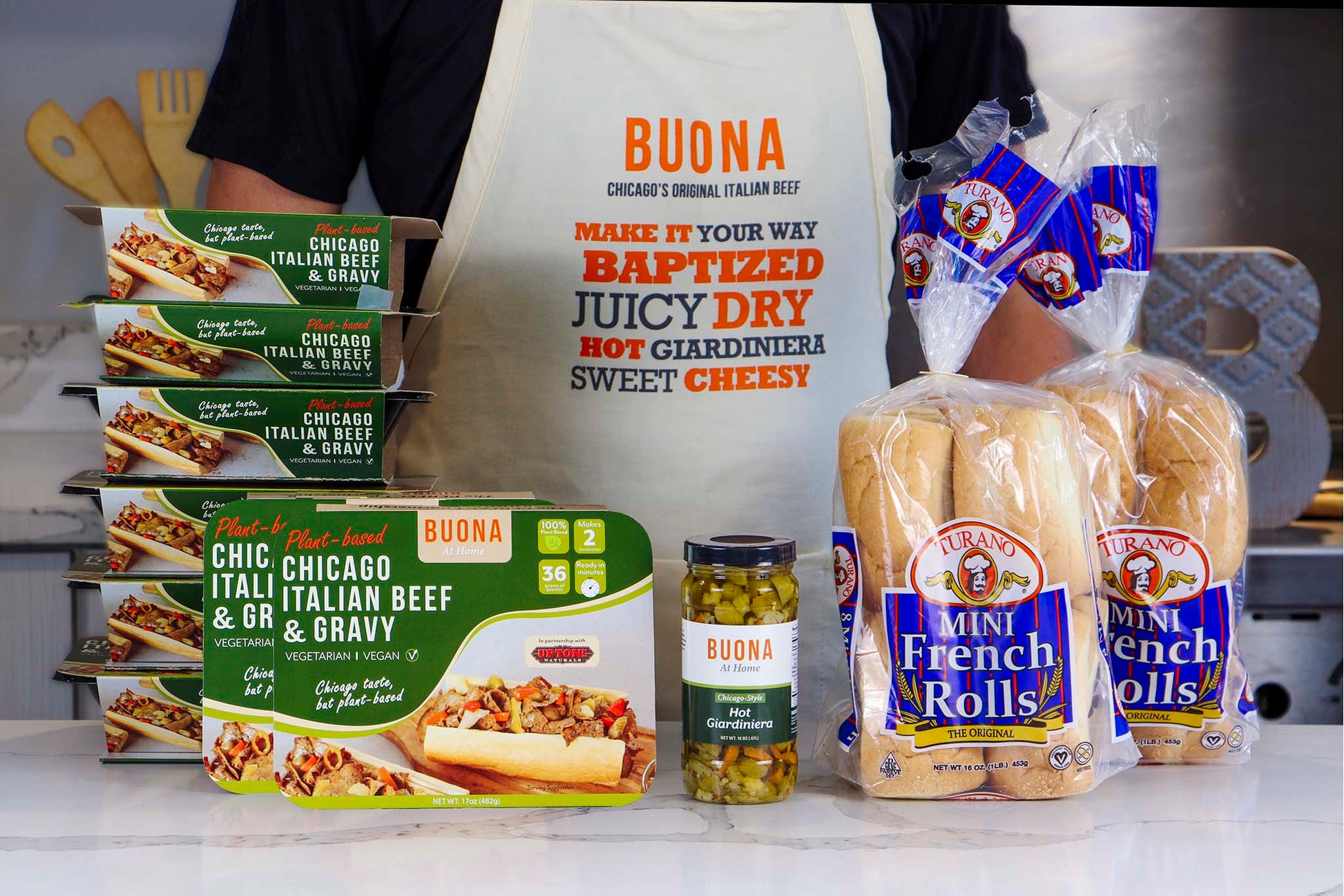 Buona Plant-Based Italian Beefless Sandwich Kit (16 Sandwiches) with Buona Apron
