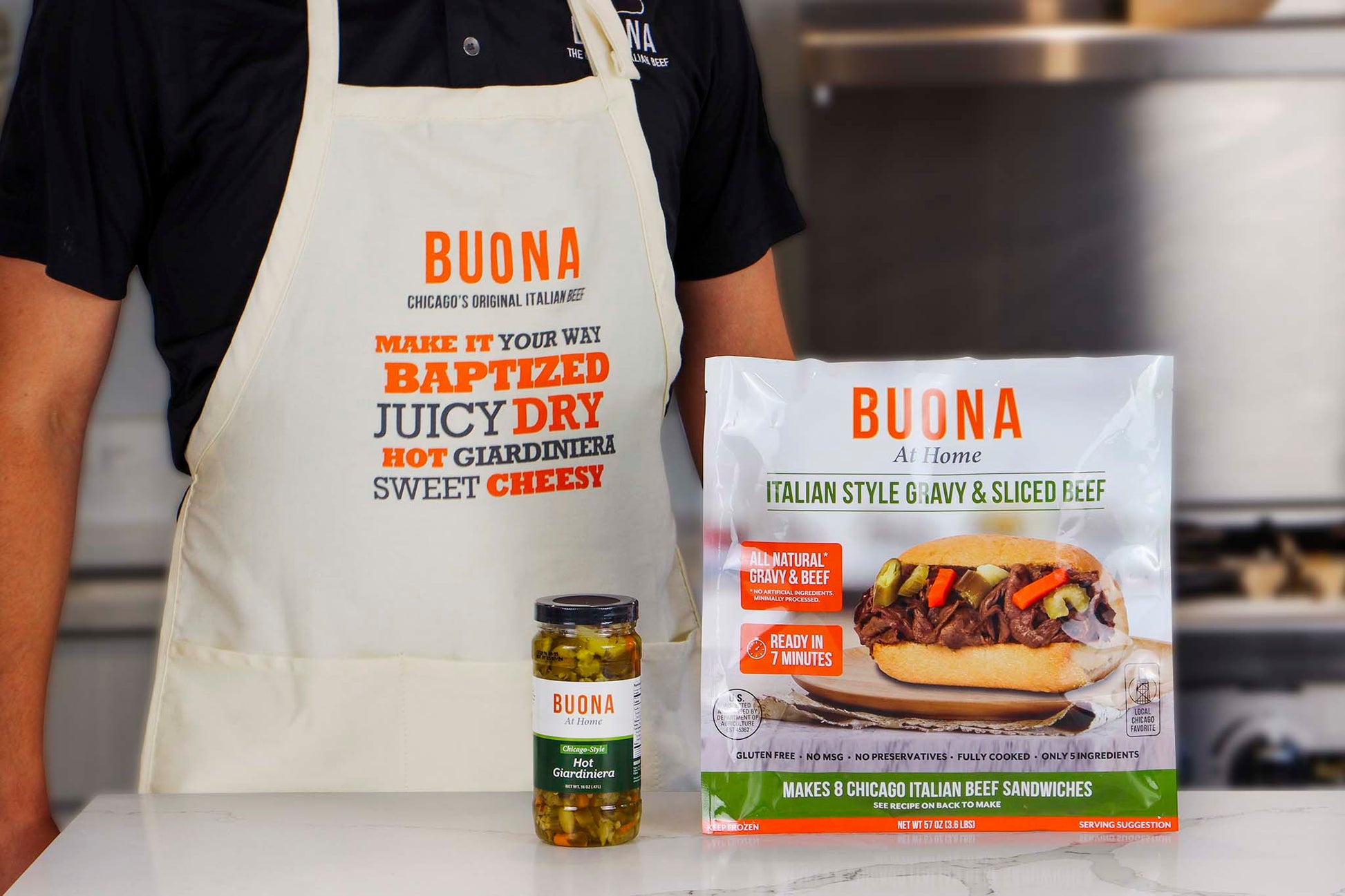 Buona Chicago Italian Beef & Gravy + Hot Giardiniera and Buona Apron